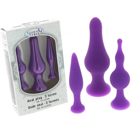 Coffret de 3 Plugs anaux pourpre 100 % silicone. Matière douce et agréable au toucher. Formes étudiées pour une pénétration anale progressive.